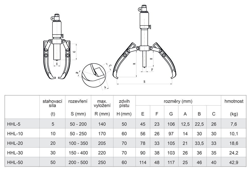 Dvoj- alebo trojramenný hydraulický sťahovák HHL-5