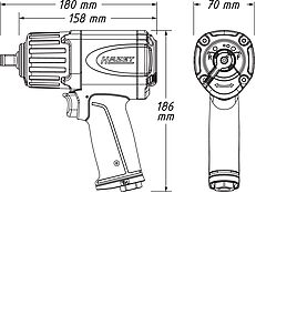 1/2" 1150 Nm 1700 Nm 8491/min 6,3 bar 198 l/min 102,33 dB (A) 6,11 m/s² 12,91 mm (1/4") 10 mm 186 mm 2,15 kg |