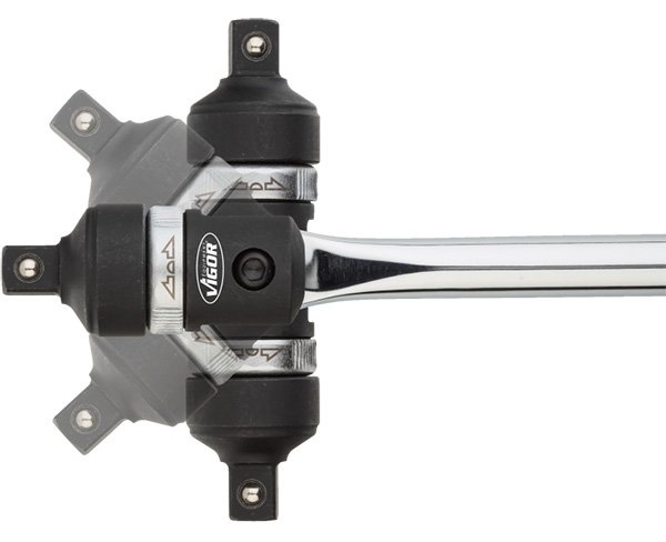 Kĺbová rukoväť s prepínacou račňou (24 zubov) so štvorhranom 1/2" s guľovou aretáciou.