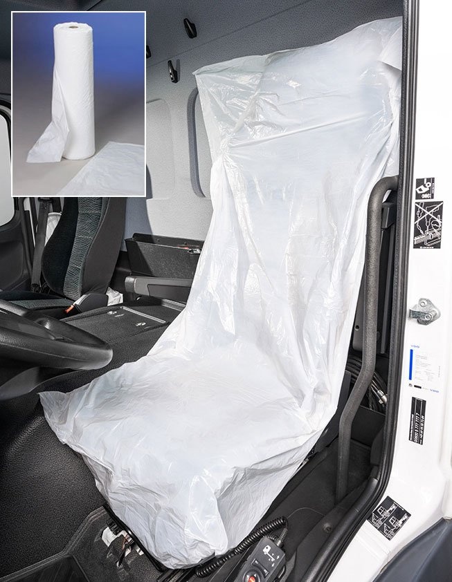 Väčší a silnejší polyetylénové povlaky 85 x 140 cm (250 ks, hrúbka 13 µm) navinuté na rolke, určené najmä pre sedadlá nákladných automobilov. Viac informácií