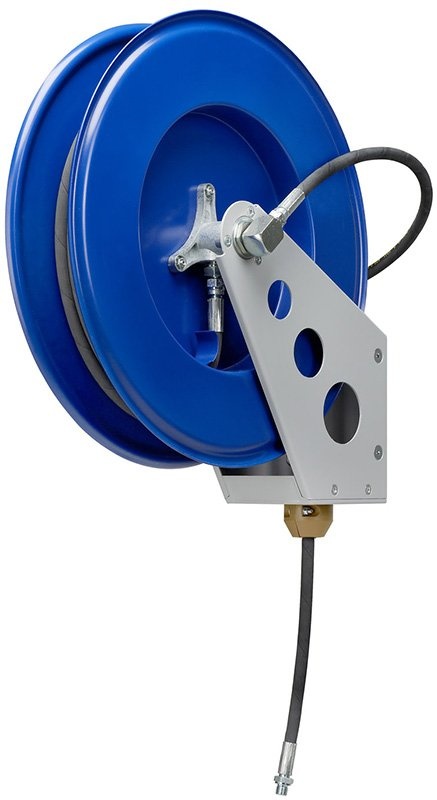 Otvorený samonavíjací bubon s vysokotlakovou hadicou pre plastické mazivá na inštaláciu na stenu alebo na podlahu.