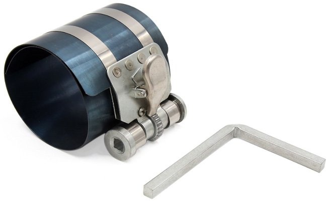 Pás na sťahovanie piestnych krúžkov pri montáži piestov do valcov.