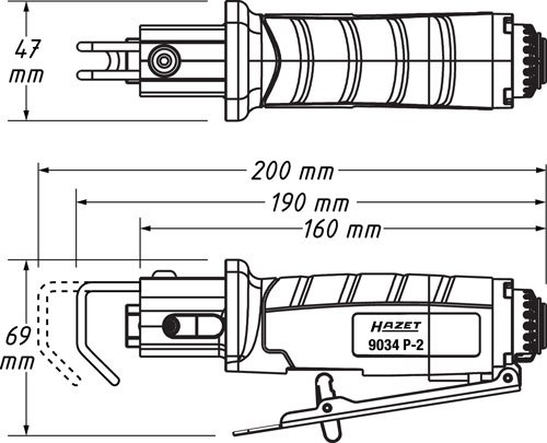 Pneumatická priamočiara pílka pre kvalitný rez oceľových plechov (až 3 mm) a hliníkových plechov (až 4 mm).