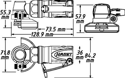 Pneumatická uhlová minibrúska pre brúsne kotúčiky s priemerom 50 - 59 mm a hrúbke 1 - 4 mm.