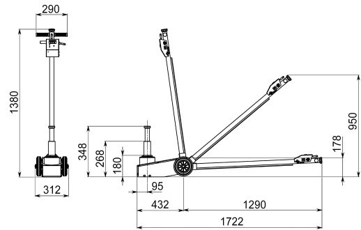 Pojazdný pneumaticko-hydraulický dvojstupňový piestový zdvihák, nosnosť 20 t (1.st.), zdvih min/max. 180/348 mm. Viac informácií