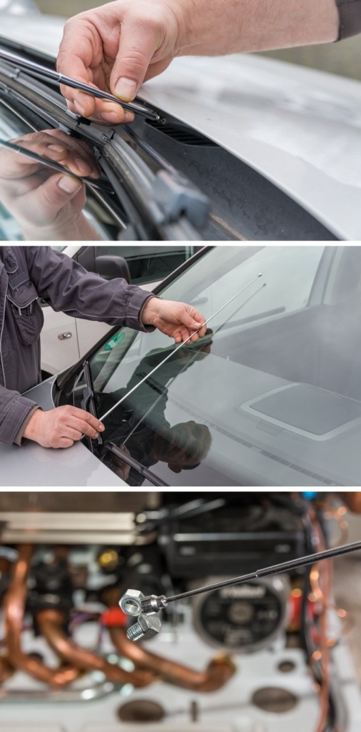 Teleskopický prípravok pre nastavenie trysiek ostrekovačov predných skiel automobilov s magnetickou hlavicou dl. 150 až 650 mm.