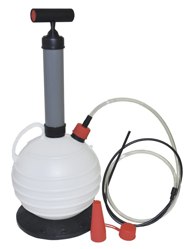 Veľmi praktický prístroj na ručné odsávanie oleja (prípadne i vody) má zásobník s objemom 6 litrov. Používa sa pre rýchle a čisté odsávanie oleja z motorov osobných automobilov, motocyklov, záhradných kosačiek, lodí, elektrických motorových generátorov a ďalších motorov. Rovnako dobre poslúži pre odsávanie olejov z prevodoviek rôznych priemyslových, stavebných a poľnohospodárskych strojov a pod. Veľmi ľahko možno takto odsávať napríklad i vodu z akvárií atď. Potrebný podtlak v zásobníku prístroja sa vytvorí ručným pumpovaním. Stačí zapumpovať 10 až 20 krát. Potom už len zasunúť odsávaciu hadičku do motora, prevodovky a pod. a opotrebovaný olej (spravidla teplý) odsať do guľovitého zásobníku. Ten je priehľadný a má na sebe odmerné značky, aby bolo možné zistiť, koľko oleja sa odsal. Potom sa olej zo zásobníka preleje do väčšej nádoby (napr. do suda či kanistra s opotrebovaným olejom). Zásobník je na tento účel opatrený vylievacím hrdlom. Celý proces odsávania opotrebovaných olejov sa tak realizuje v dokonalej čistote. Čerpadlo nad zásobníkom možno ľahko odmontovať, takže prístroj pri skladovaní zaberie len minimum miesta. Prístroj má profesionálnu kvalitu, ale možno ho samozrejme používať aj pre domácnosť a hobby-sektor.
