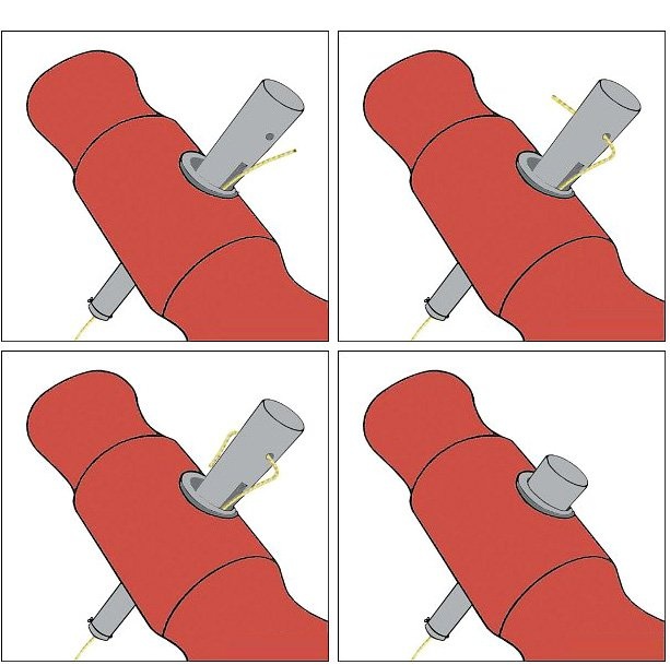 drôt sa pretiahne cez uvoľnený driek, znovu pretiahne koncom drieku a natočí späť do puzdra rukoväte, pričom sa stlačením koncového klinu späť do rukoväte pevne zaistí