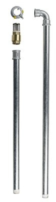 Sacia trubica s pozinkovaným oblúkom 1" + sacia trubica 1", celková dl. 1400 mm, k elektrickým axiálnym čerpadlám 12 V / 24 V / 230 V pre naftu a vykurovacie oleje Premaxx, MOBIFIxx, vývody G 1" (vnútorný závit), G 2" (vonkajší závit), pre montáž do zásobníkov, sudové skrutkové spojenia 2", pätný ventil so sacím košom, spojka 1" (pre obe rúry).