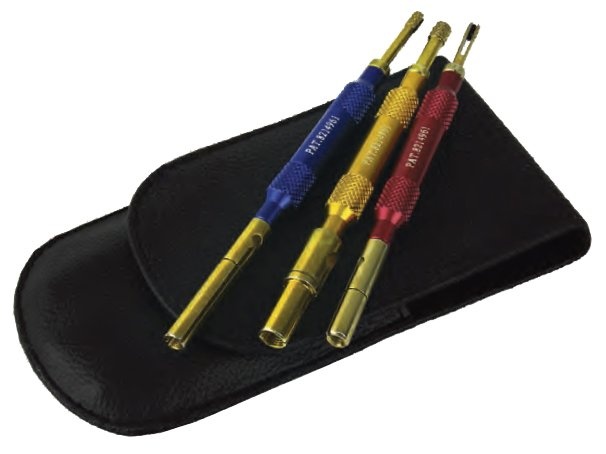 Sada (3-dielna) obojstranných rúrkových prípravkov pre čistenie samčích aj samičích kontaktov 7- a 13-pólových zásuviek EÚ-prívesov.