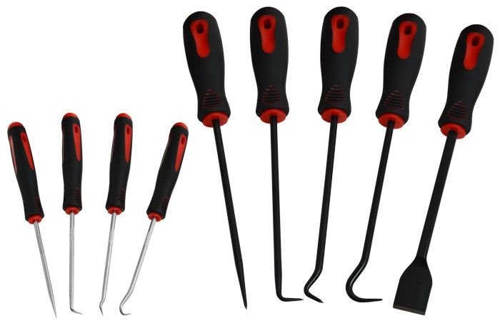sada univerzálnych háčikov, hrotov a špičiek na vypichovanie príchytiek, odstraňovanie tesnení, O-krúžkov, gufer apod.
