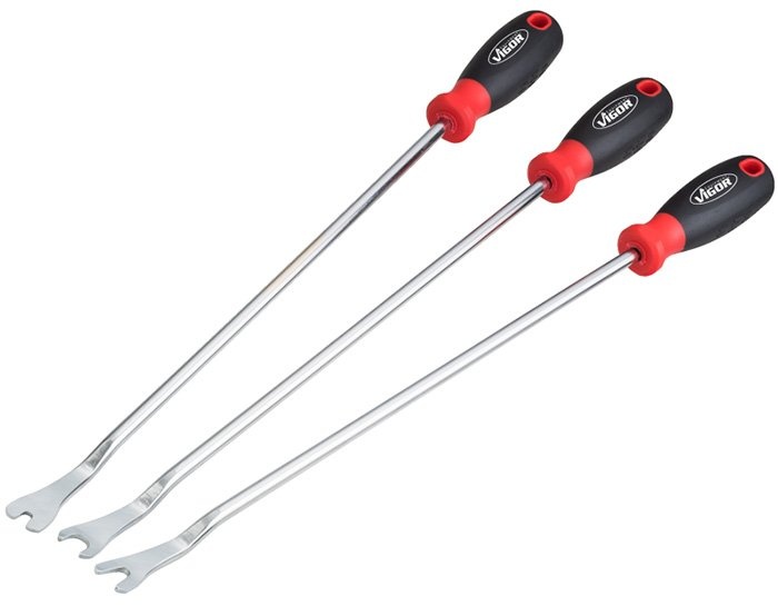 Sada 3 špeciálnych nástrojov pre demontáž najmä dverového čalúnenia, resp. uvoľňovanie kovových i plastových klipov.