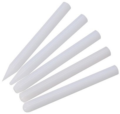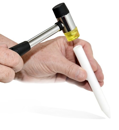 Súprava (5 ks) bielych tyčiek z PA 100 x Ø 10 mm s polguľatým, kužeľovitým, tupo a ostro špicatým koncom slúži pre poklep kladivom, čím sa uvoľňuje napätie v plechu a ten sa rovná.