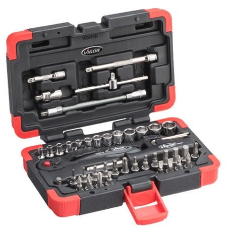 46-dielna sada nástrčných kľúčov / hlavíc 1/4" a ďalšieho náradia v plastovom kufri.