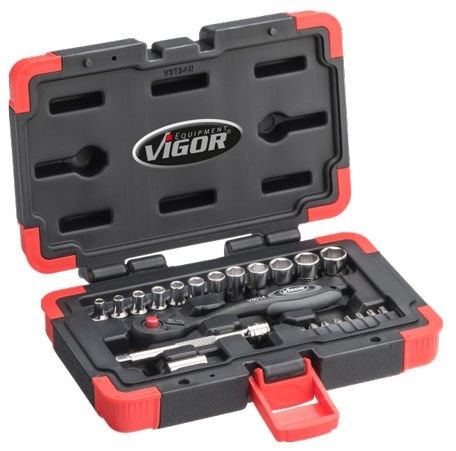 23-dielna sada nástrčných kľúčov / hlavíc 1/4" a ďalšieho náradia v plastovom kufri.