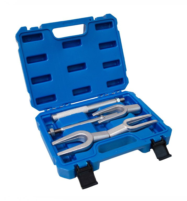 Obsah sady: 1 ks vyrážač guľových čapov (23,8 mm) 1 ks vyrážač riadiacich tyčí (17, 5 mm) 1 ks vyrážač hlavné páky riadenia (28,5 mm) 1 ks nárazové držadlo 1 ks adaptér pre použitie pneumatického kladiva